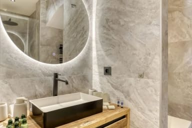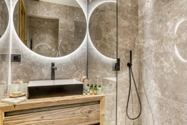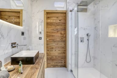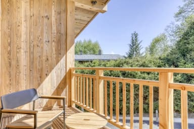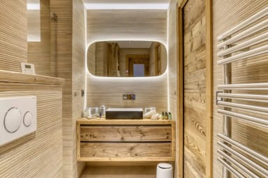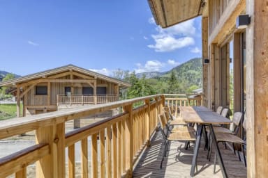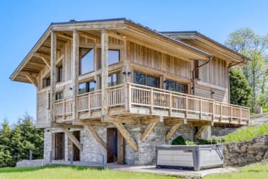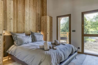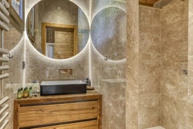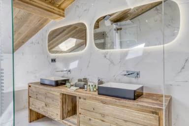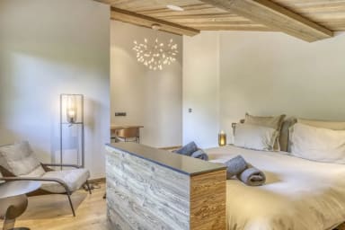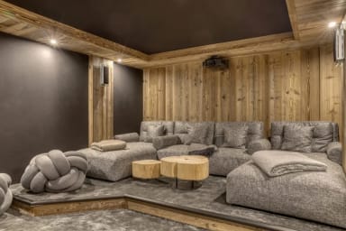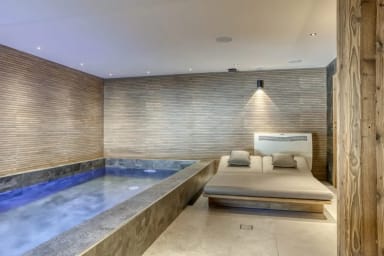 L’espace bien-être intérieur se compose d’une piscine chauffée, d’un spa de nage, d’un sauna, d’un hammam et d’un jacuzzi intérieur, complété par un jacuzzi extérieur offrant une vue sur le Mont-Blanc. Un home cinéma privé et plusieurs terrasses et balcons permettent de savourer chaque instant face au panorama alpin.