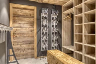 Côté pratique : ski room avec rangements et sèche-chaussures, buanderie équipée, garage fermé et bureau lumineux idéal pour le télétravail.