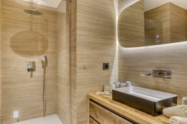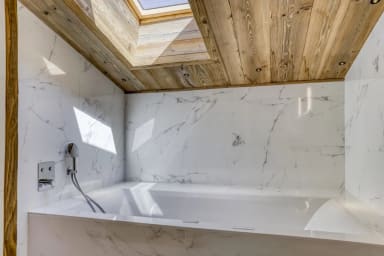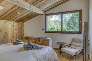 L’espace bien-être intérieur se compose d’une piscine chauffée, d’un spa de nage, d’un sauna, d’un hammam et d’un jacuzzi intérieur, complété par un jacuzzi extérieur offrant une vue sur le Mont-Blanc. Un home cinéma privé et plusieurs terrasses et balcons permettent de savourer chaque instant face au panorama alpin.